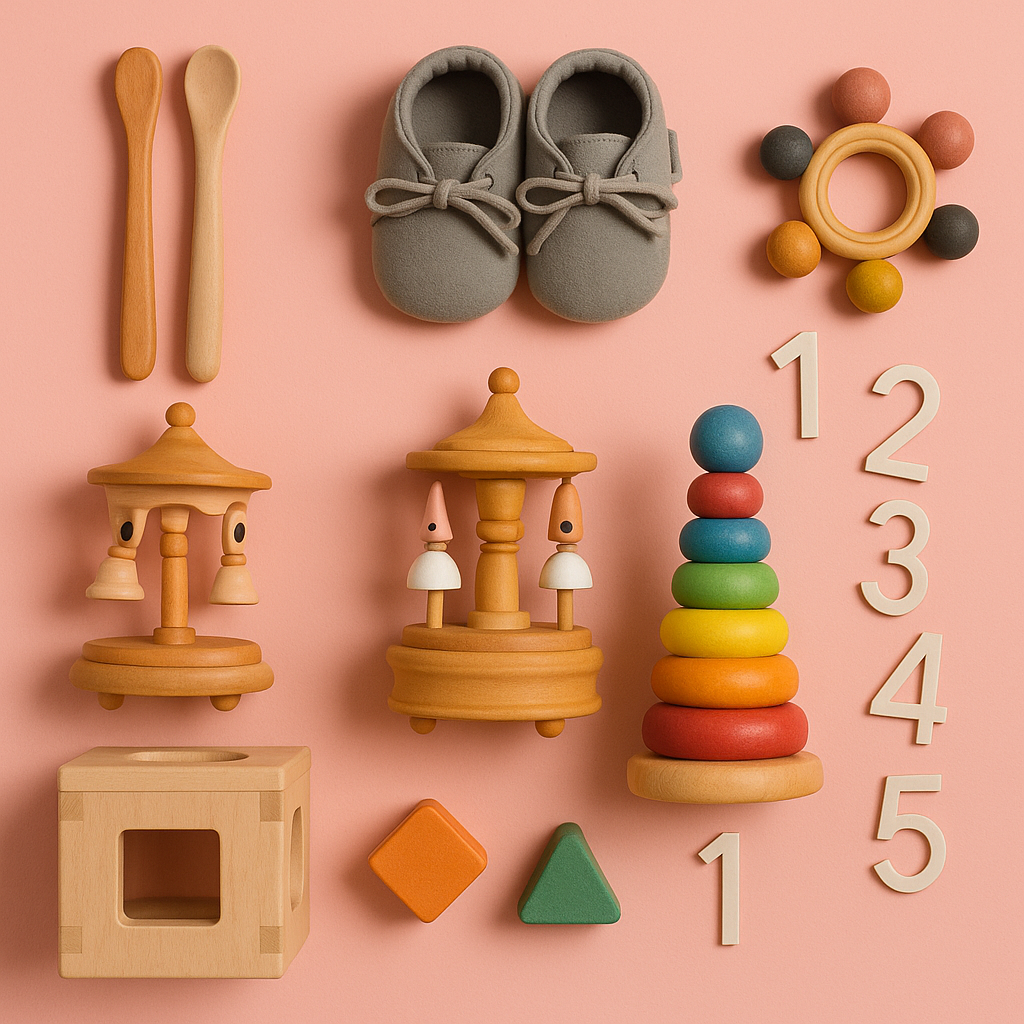 Hochet Bébé | Kit 7 pièces d’instruments en bois Montessori