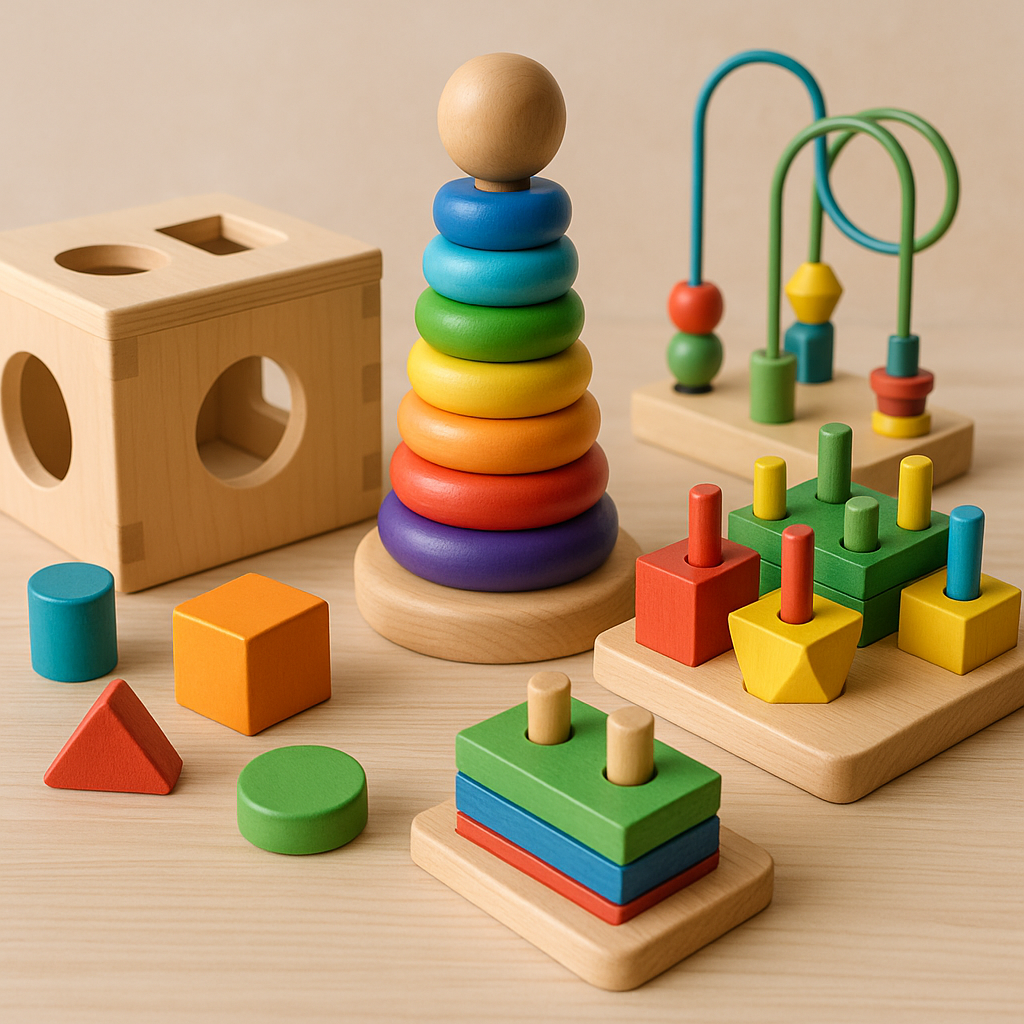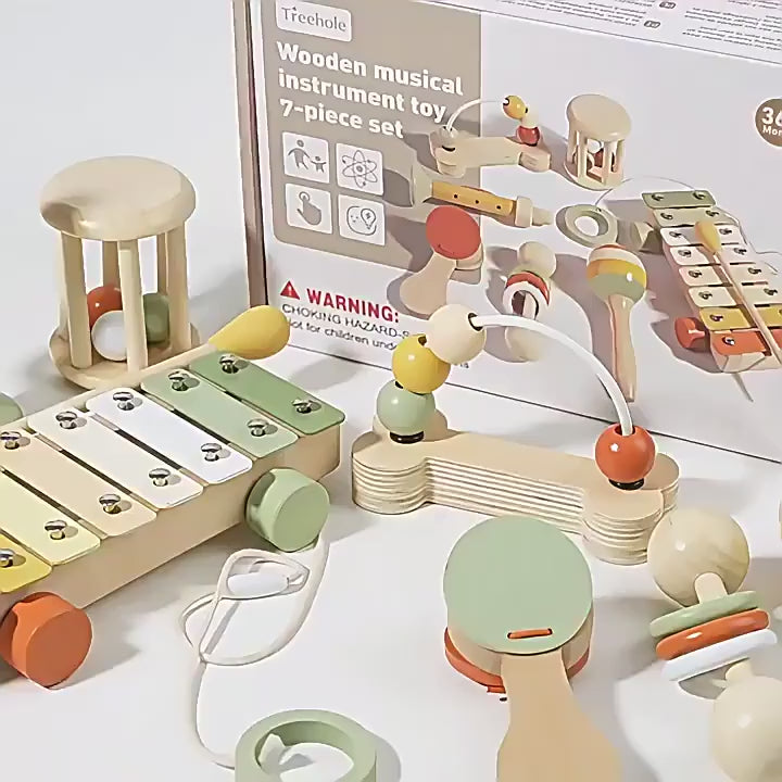 Hochet Bébé | Kit 7 pièces d’instruments en bois Montessori